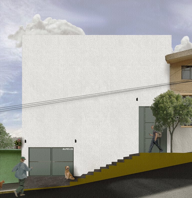 Casa Alpes 26 está situada en una localidad urbana del Estado de México, dedicada a la industria, comercios y prestación de servicios, por lo que el contexto del sitio es dinámico y vivaz. Así mismo, nos encontramos en un terreno montañoso con desniveles importantes que además de caracterizar a esta zona nos lleva a desarrollar un proyecto único en su entorno.