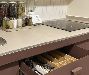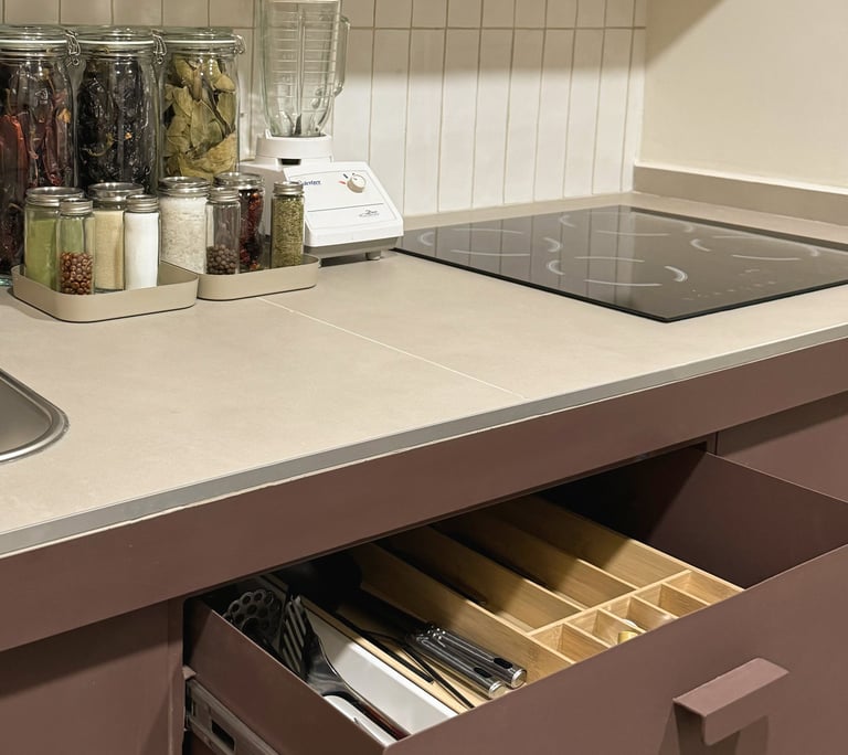Gavetas: Proyectadas para eficientar y agilizar el espacio modulado en el área.