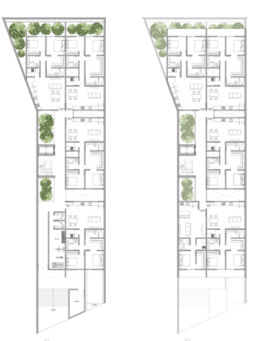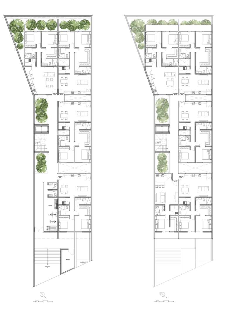 Cada departamento cuenta con gran privacidad y aprovechamiento de ventilación e iluminación natural; se cuenta con patios interiores que iluminan cada espacio del proyecto. Así mismo, sus amenidades lo hacen atractivo en el mercado actual.
